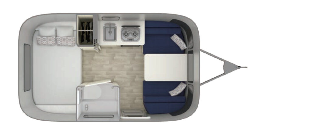 Der Airstream 16 bietet bis zu 4 Schlafplätze, eine Naßzelle mit Dusche und einer Spülwassertoilette. Zur umfangreichen Serienausstattung gehört neben einem großen Kühlschrank, einem 2-Flammen-Herd, eine Zipdee Markise auch eine Klimaanlage.