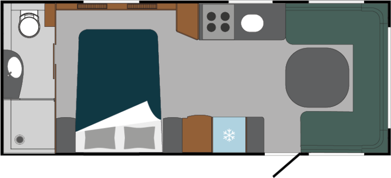 Der 620 ist ein etwas größerer Wohnwagen, der viele unterschiedliche Grundrisse bietet. Seine Kleiderschränke und smarten Stauräume machen ihn zu einer guten Wahl für Familien, die längere Zeit an einem Ort bleiben möchten, denn Sie können problemlos alles einpacken, was Sie zum Skifahren, für eine Angeltour im Herbst oder für einen Strandurlaub an der Küste brauchen. Auch wenn der 620 etwas größer ist, überzeugt er mit einer guten Straßenlage.